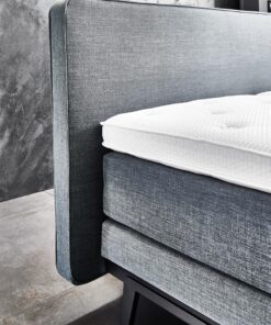 Deze boxspring is zowel vlak als elektrisch verstelbaar te bestellen en wordt compleet geleverd met een zwevend hoofdbord en zwart stalen frame. Door de slanke boxen met minipocketveren, het afgeronde hoofdbord en het zwarte frame heeft deze boxspring een mooie en verfijnde uitstraling